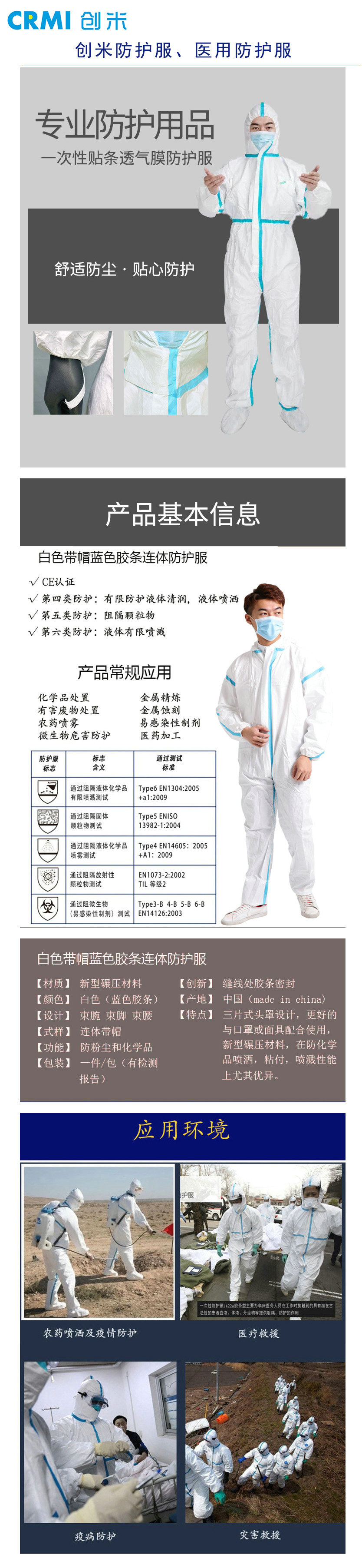 CRMI protective clothing, medical protective clothing, isolation clothing