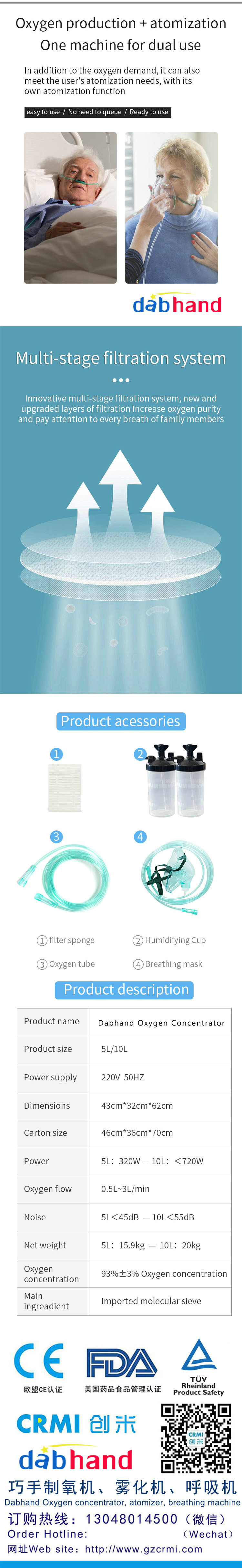 Dabhand Medical Oxygen machine 10L/5L, Atomization machine, Inhalation machine, Disinfection machine